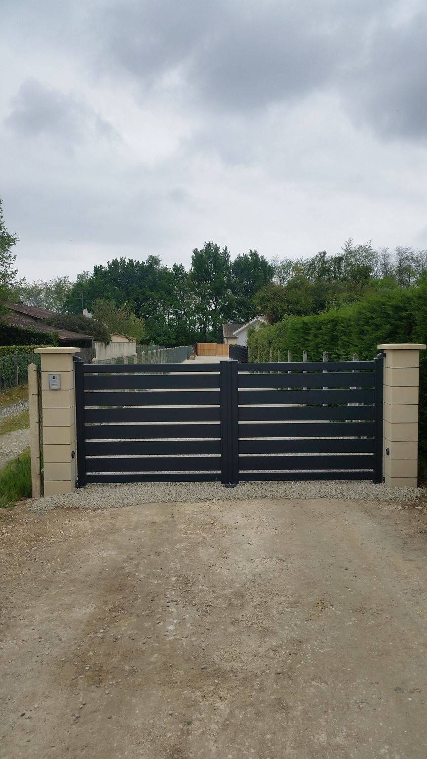 C'est un portail adapté pour les secteurs venteux, nous avons motorisé ce portail à SAINT ANDRE DE CUBZAC, a l'aide de moteur réducteur à bras pour une ouverture automatique a l aide de télécommandes , il est aussi muni d une batterie de secours en cas d orage où de coupure électrique du réseau, et d un déverrouillage du système coté intérieur de l'habitation.