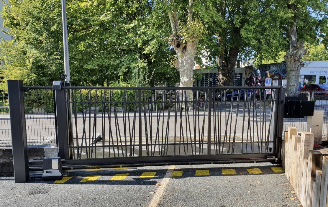 Installation d'un portail coulissant en aluminium avec des lames ajourées Beychac et Caillau près de Montussan