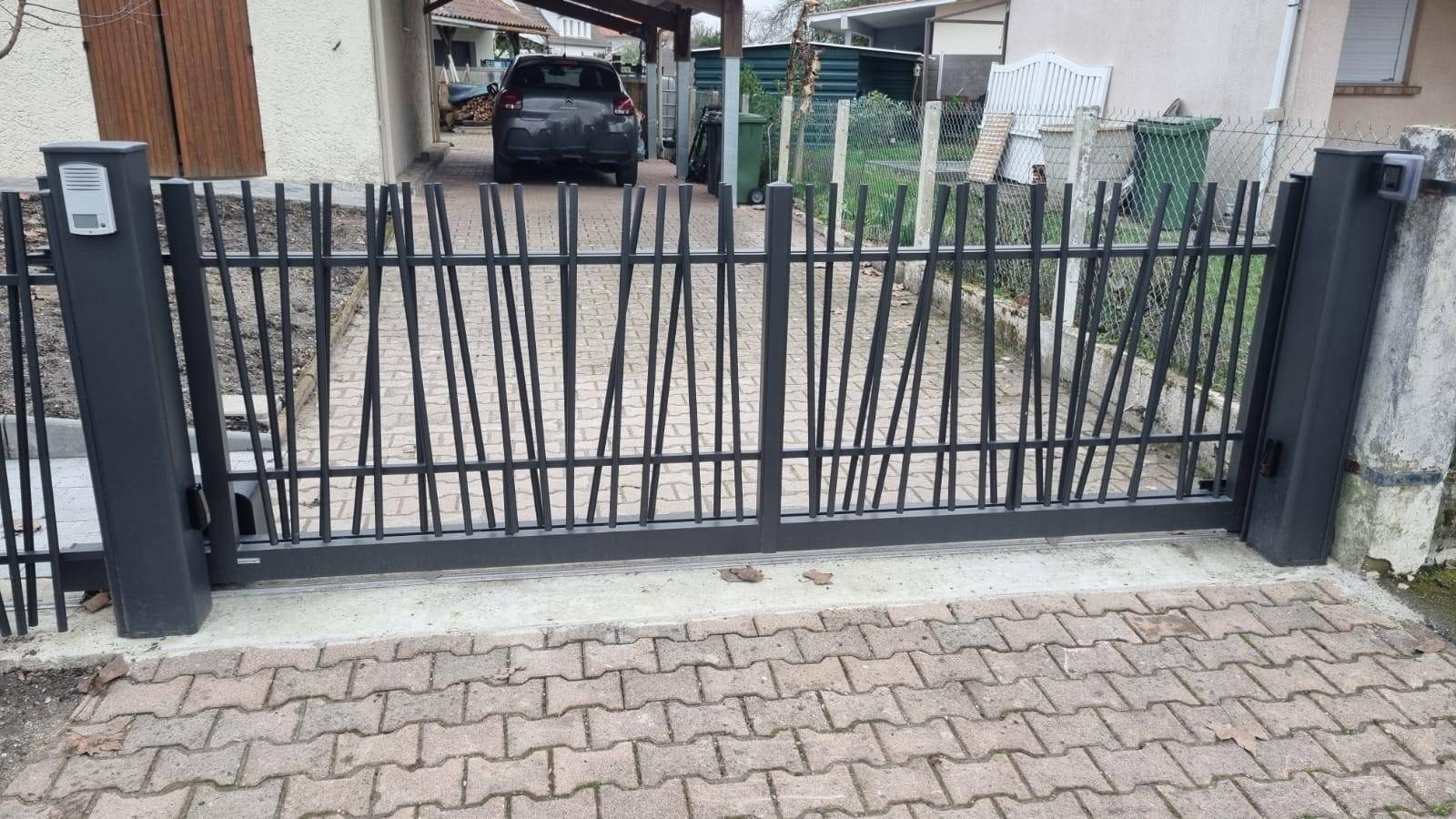 Voici un portail double vantaux motorisé sur la commune de SAINT ANDRE de CUBZAC, sans poignée, ni serrureCe portail est ajouré, et d'une couleur tendance gris anthracite, ral 7016. C'est un portail adapté pour les secteurs venteux, nous avons motorisé ce...