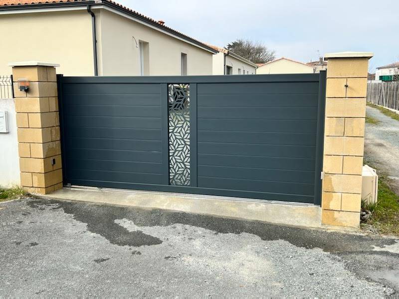 Fabrication et pose d'un portail coulissant en alu motorisé gris anthracite sur Villegouge à proximité de Libourne