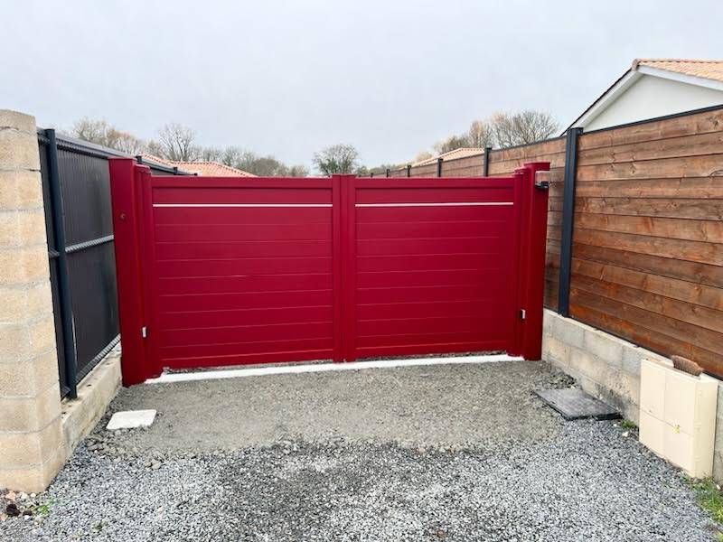 Installation d'un portail battant motorisé en alu de couleur rouge CADIOU vers Saint André de Cubzac 33